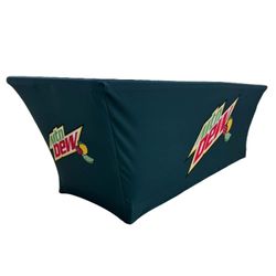 NEW Premium Fabric used as of July 11, 2024. Our New premium weight is 260gsm with upgraded finishing. This form-fitting throw has a clean look to it and is the perfect option for promoting your brand. It stretches to fit tightly around tables, creating a crisp, refined appearance. Stand out from the competition at tradeshows with these clean look, stretch fit table covers. Four-sided table cover creates a lasting impression. Two-way Stretch Fabric. Simple storage. Closed back makes it easy to hide materials underneath table. Lightweight, convenient for travelling and shipping. Usage: Presentations, trade shows, retail stores, events, school functions, fundraisers. Price includes full color imprint. Max Imprint: 151”W x 85”H
